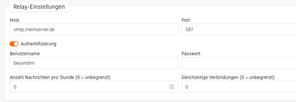 Nun können Sie unter Relay-Einstellungen Ihren Mailserver eintragen.