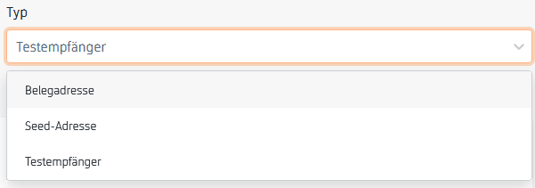 Unter Typ kann die Testadresse in eine Seed- oder Belegadresse geändert werden