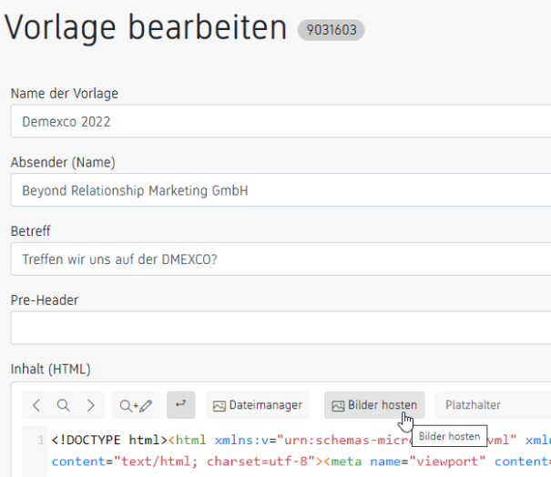 Mit nur einem Mausklick auf Bilder hosten in unserem Editor werden alle in der Vorlage enthaltenen Bilder auf unsere Server gespeichert und direkt eingesetzt. Auch bieten wir eine Importfunktion für ZIP-Dateien an, bei der die Bilder ebenfalls automatisch hochgeladen und eingefügt werden.