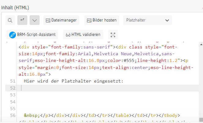 Platzhalter werden normalerweise in den E-Mail-Text, Absender oder Betreff der Nachricht eingefügt. An Stelle des Platzhalters wird später der entsprechende Wert für jeden Empfänger eingefügt. Die Werte für die Platzhalter werden aus unserer Datenbank abgerufen.