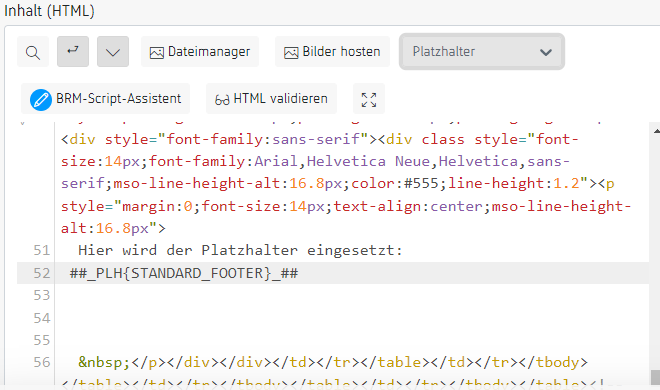 Zu finden in unserem WYSIWYG-Editor: Reiter Einfügen → Platzhalter: